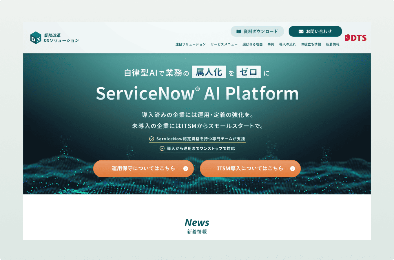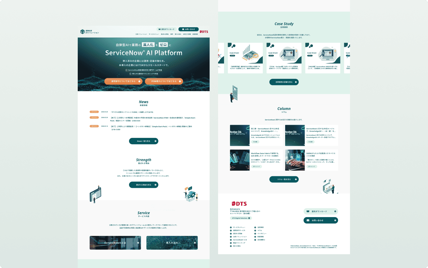 株式会社DTS様の新規事業立ち上げに伴うサービスサイト制作を担当しました。