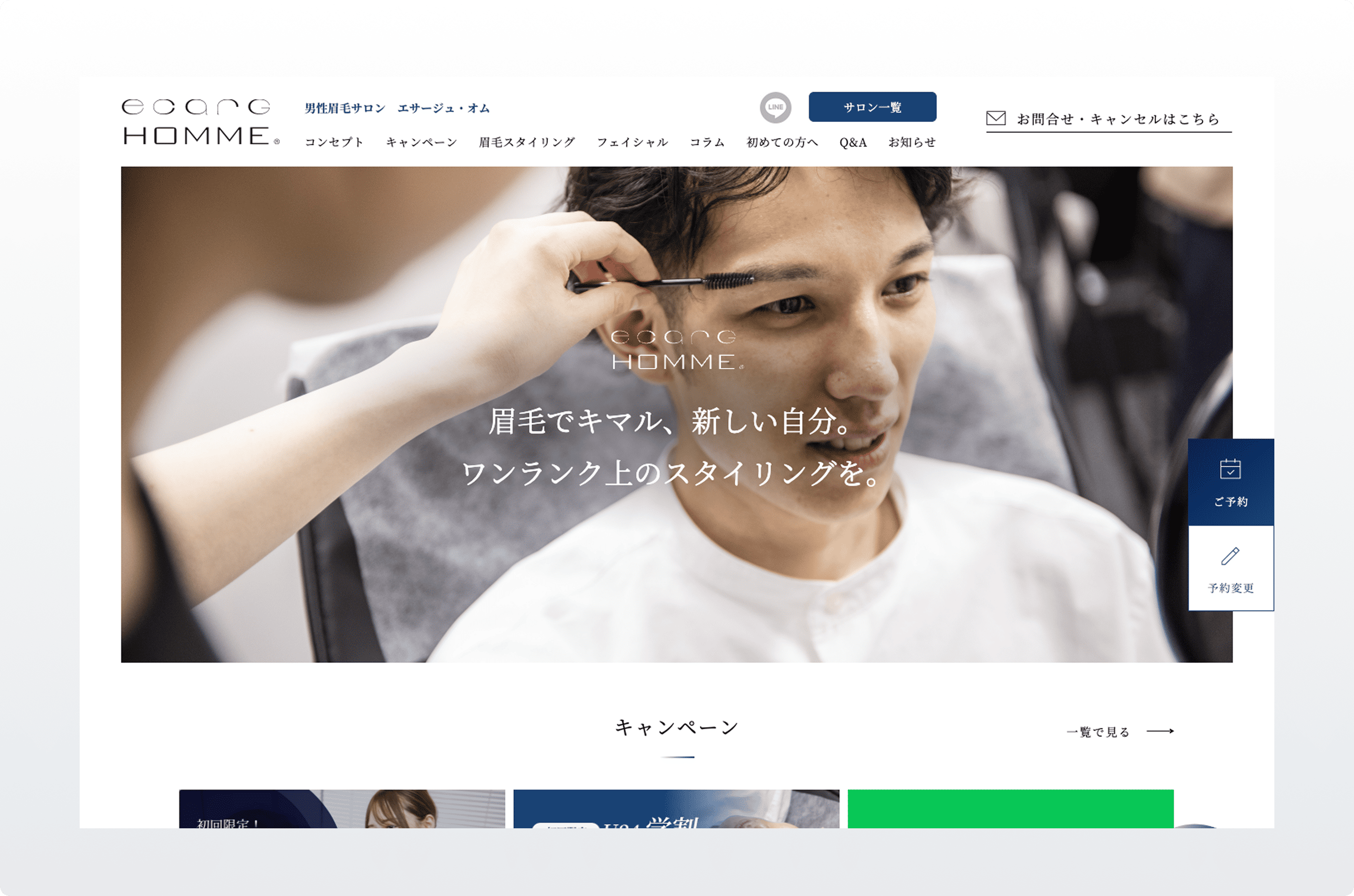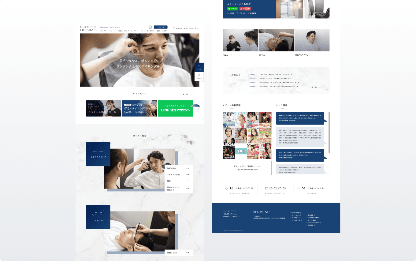 男性専門眉毛サロン「エサージュ・オム」様のWebサイトを制作しました。