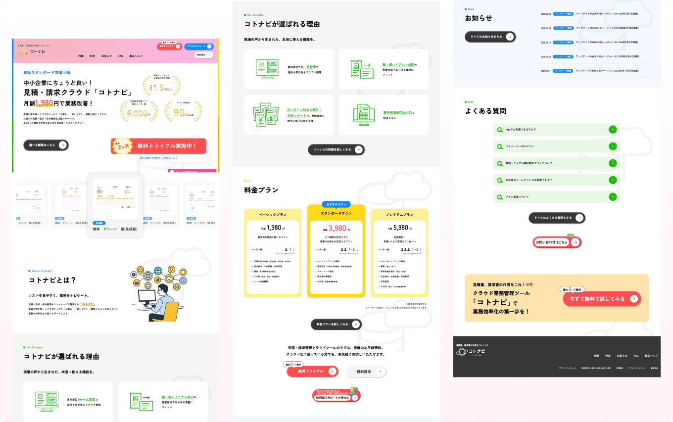 新サービスの認知拡大と無料トライアル申込数の増加を目的に、UI/UX設計から運用・保守までを一貫して担当しています。